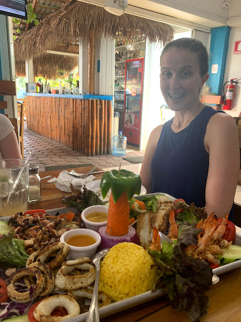 Our last full day in Mexico was a dreamy one. I was feeling kind of sick. I think it was dehydration and a little disagreement with something I ate. No fever or anything, just feeling sick and tired. In the morning, everyone but Lorien and Clare headed out to the cenote closest to our house called Cenote Azul. It was absolutely stunning! We went to a different cenote when we were in Tulum that was cool but Cenote Azul was my favorite. Because I wasn't feeling great I decided not to get into the water. They are very protective of the cenotes (rightly so). You have to shower before getting into the water, no sunscreen is allowed, and they are strict with the materials you can take into the water (no flippers). I figured it was best to not put my possibly infectious body in the water. I did fully enjoy the views around the cenote! I've never seen anything like it.